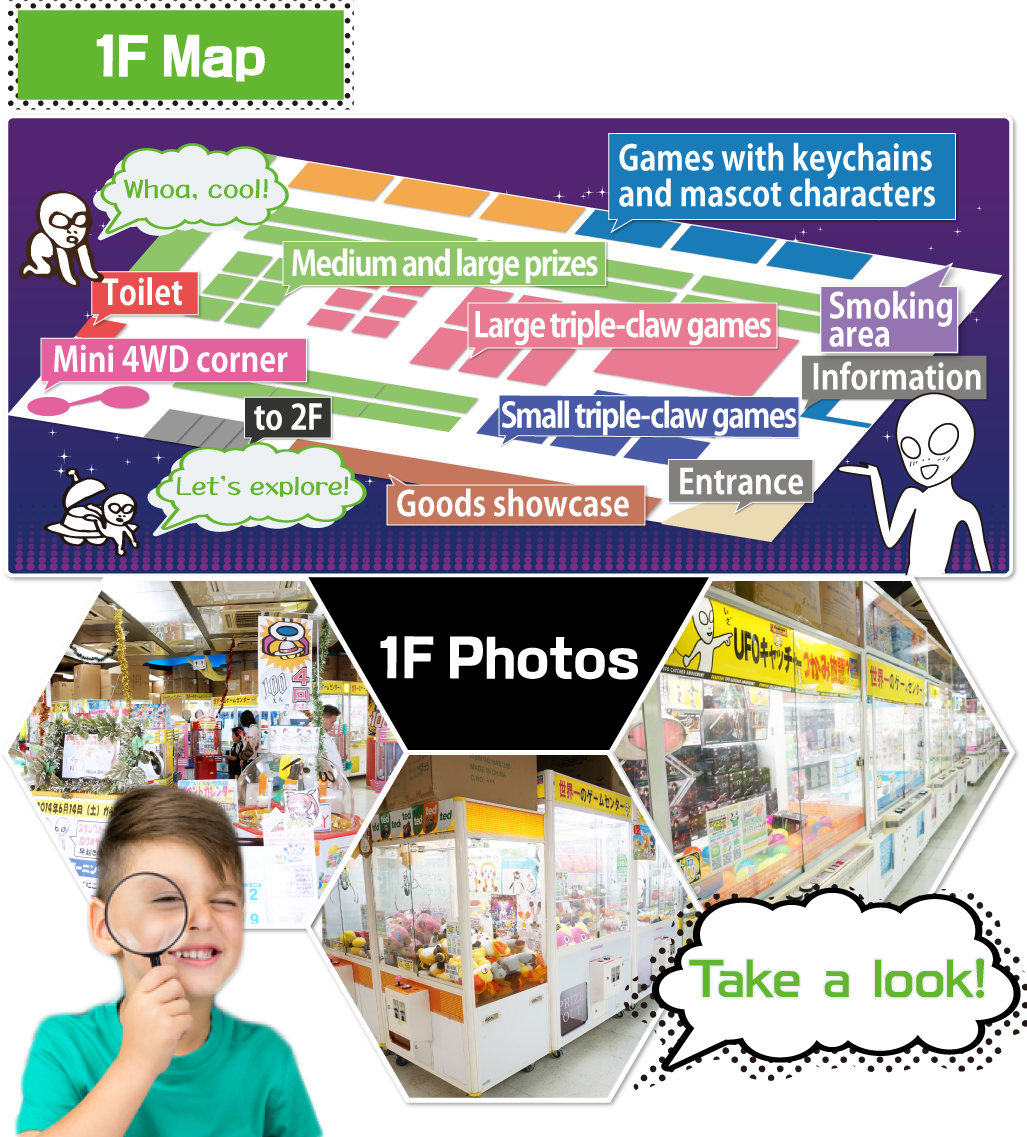 An enormous UFO base suddenly appeared in Japan! Inside was a huge amusement center specialized in crane games! We have something for everyone, man or woman, from children to adults. We offer lots of different events and services for everyone, in our pursuit of a good time like never before, here at “UFO Base Everyday!”
